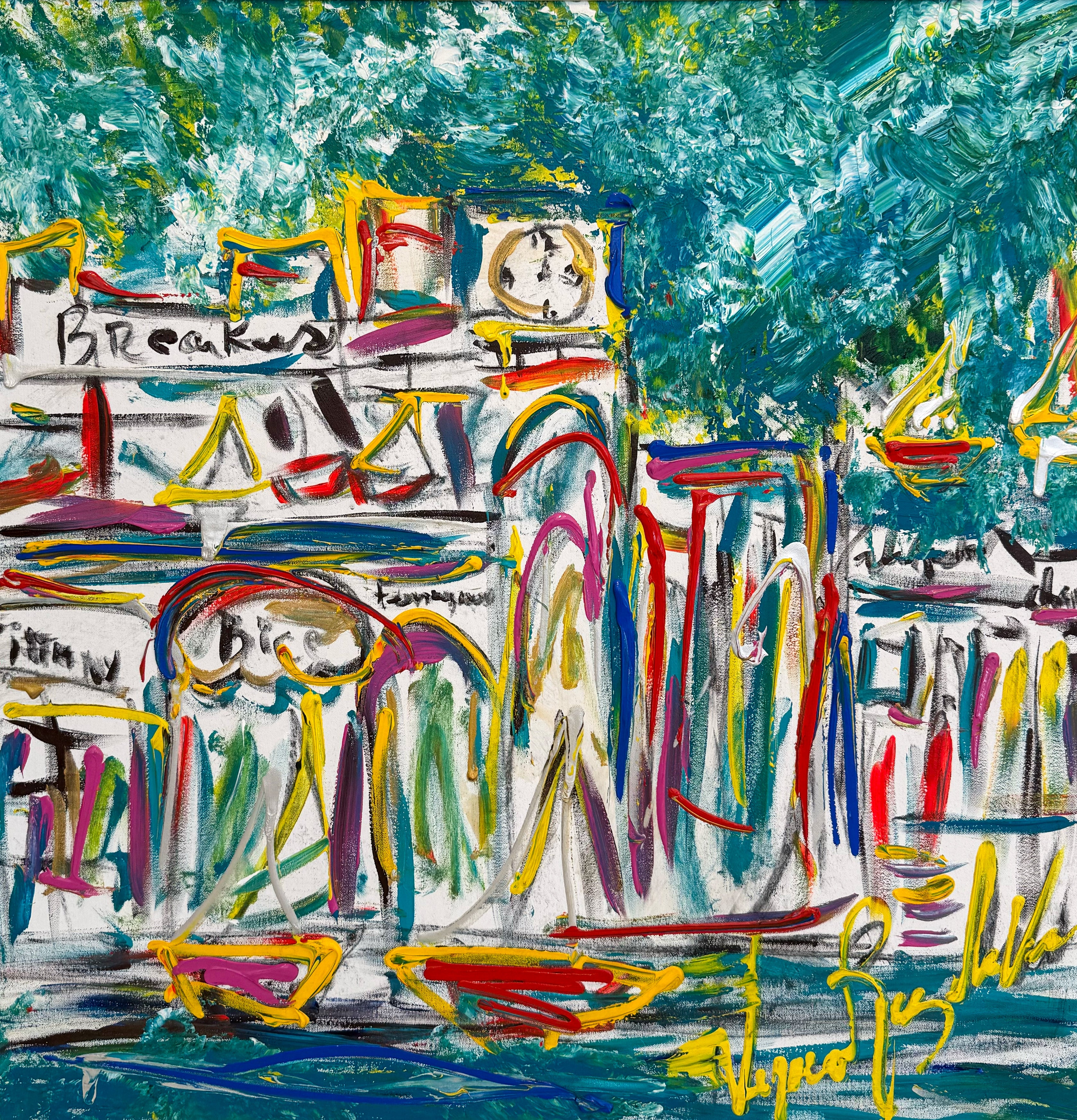 I Love Palm Beach by Veronica Ruiz de Velasco is a vibrant homage to the island paradise that has become integral to the artist's creative journey. Through bold acrylic strokes and her masterful neo-figurative style, Veronica captures the essence of Palm Beach's distinctive beauty—its luminous light, tropical energy, and sophisticated coastal charm. This intimate work reflects the deep personal connection the artist has cultivated with her adopted home, where she established her gallery on prestigious Worth Avenue, translating her affection for the community into a dynamic celebration of color, place, and belonging.